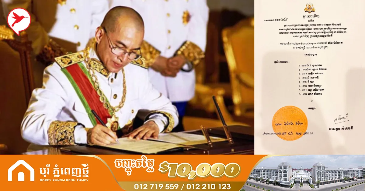 ព្រះមហាក្សត្រ ចេញព្រះរាជក្រឹត្យផ្តល់គោរមងារ «ឧកញ៉ា» ដល់បុគ្គល ៨ រូបនេះ