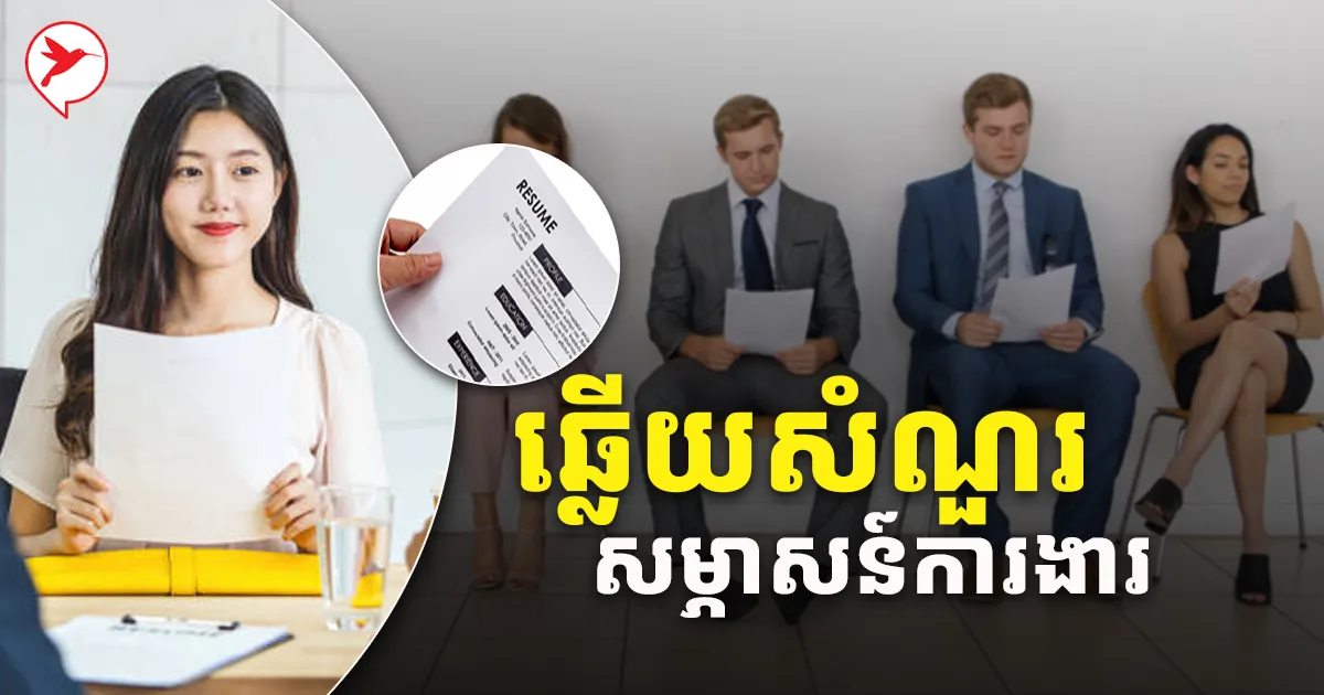 ១. ហេតុអ្វីបានជាអ្នកចង់ធ្វើការនៅទីនេះ?៖ ក្នុងនាមជាអ្នកជ្រើសរើសបុគ្គលិកនិងមានជំនាញធនធានមនុស្ស ដែលមានបទពិសោធន៍ទទួលខុសត្រូវក្នុងការស្វែងរកបុគ្គលិកឱ្យក្រុមហ៊ុនកំពូលដូចជា Fortune 500 គ្រូបង្វឹកផ្នែកអាជីពអ្នកស្រី Emily Liou បានប្រាប់ CNBC ថានៅពេលអ្នកសម្ភាសន៍សួរអំពីមូលហេតុមូលដែល អ្នកចង់ធ្វើការនៅក្រុមហ៊ុនរបស់គេគឺជាវិធីមួយដែលគេចង់វាយតម្លៃអ្នកនឹងបេក្ខជនផ្សេងទៀត ថាតើនរណាស្គាល់ក្រុមហ៊ុននិងចក្ខុវិស័យរបស់គេបានច្បាស់ជាង ឬមួយគ្រាន់តែចង់បានការងារធ្វើ។