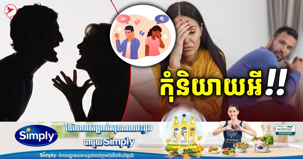 សុភាសិតខ្មែរពោលថា “សម្តីជាអាថ៌កន្លង បានសុខទុក្ខផង ព្រោះសម្តី” ក្នុងទំនាក់ទំនងស្នេហា តែងមានផ្អែមល្វីងជូរចត់ មានរឿងអាក់អន់ស្រពន់ចិត្ត ទាស់ទែងគ្នាជៀសមិនផុត។ ខាងក្រោមនេះគឺជា ពាក្យសម្តីទាំង៥ឃ្លា ដែលធ្វើឲ្យចំណងស្នេហាប្តីប្រពន្ធ ឬគូស្នេហ៍ឈ្លោះគ្នាខ្លាំង ហើយឈានដល់ការចែកផ្លូវគ្នាទៀតក៏មាន ដោយយោងតាមអ្នកជំនាញ៖