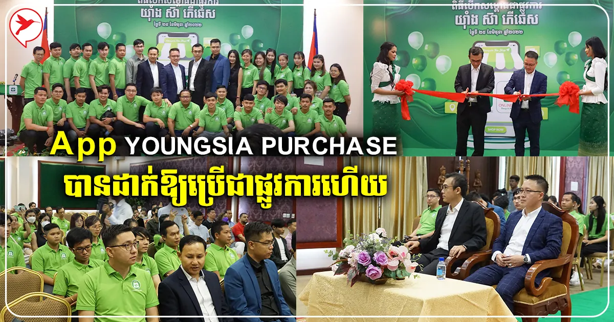 កម្មវិធីដាក់សម្ពោធឱ្យប្រើប្រាស់ App Youngsia Purchase (យ៉ាំង ស៊ា ភើឆេស) ជាផ្លូវការនេះ ធ្វើឡើងក្រោមវត្តមាន របស់ថ្នាក់ដឹកនាំក្រុមហ៊ុន E Finger Technology Co.,Ltd គឺលោក Haruhiro Sato ដែលជាភាគហ៊ុននិកក្រុមហ៊ុន និងលោក Jet Lee ជានាយកគ្រប់គ្រងក្រុមហ៊ុនផងដែរ។ អង្គពិធីនេះ បានធ្វើឡើងក្នុងគោលបំណង ផ្សព្វផ្សាយដំណឹងទៅកាន់អតិថិជន និងអ្នកដែលចង់ទិញទំនិញពីប្រទេសចិនមកលក់ដោយខ្លួនឯង ឱ្យបានជ្រាបថាចាប់ពីពេលនេះទៅ App Youngsia Purchase មានវត្តមាននៅក្នុងប្រទេសកម្ពុជាយើងហើយ។