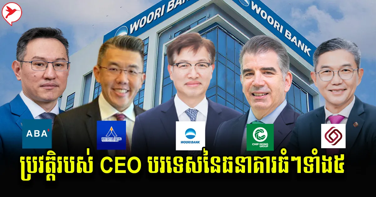 សព្វថ្ងៃនេះ វិស័យធនគារបានក្លាយជាសរសៃឈាមយ៉ាងសំខាន់នៅក្នុងការដំណើរការសេដ្ឋកិច្ចជាតិទាំងមូលឱ្យរីកចម្រើនទៅមុខបាន ដោយសារតែគ្រប់អាជីវកម្មមិនថាតូចឬធំសុទ្ធតែពឹងផ្អែកលើធនាគារ។ ថ្ងៃនេះដែរ Business Cambodia សូមនាំអារម្មណ៍លោកអ្នក ឱ្យមកស្កាល់ ថ្នាក់ដឹកនាំដ៏ដូចជានាយកប្រតិបត្តិជនជាតិបរទេសទាំង៥រូប របស់ធនាគារធំៗ៥ ដែលកំពុងដំណើរការនៅក្នុងប្រទេសកម្ពុជាយើង។