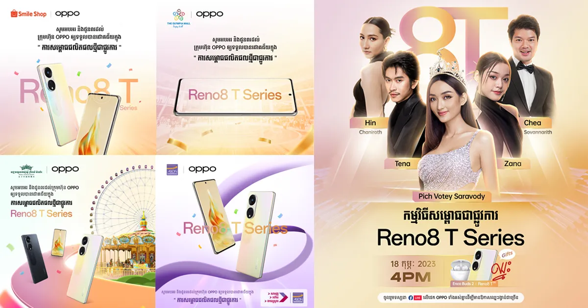 ថ្មីៗនេះឃើញថានៅលើ Facebook page ក្រុមហ៊ុន OPPO បានដាក់បង្ហាញ និងត្រៀមដាក់សម្ពោធជាផ្លូវការនូវស្មាតហ្វូន OPPO Reno8 T Series ជំនាន់ថ្មីចុងក្រោយបង្អស់ ដែលជាស្មាតហ្វូនត្រកូល Reno ទទួលបានការគាំទ្រច្រើនមហាសាលទូទាំងប្រទេសកម្ពុជា ពិសេសអ្វីដែលអតិថិជនស្រលាញ់ ព្រមទាំងទន្ទឹងរង់ចាំមើល OPPO ហើយម្តងនេះគេបានឲ្យដឹងថា លើកនេះមិនដូចមុន។