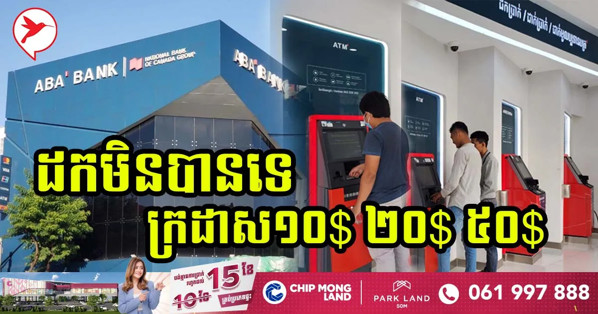 ថ្មីៗនេះមានអថិជនរបស់ធនាគារABAជាច្រើនមានការងឿងឆ្ងល់ចំពោះការដកលុយតាមទូATM។ ដោយហេតុថាពួកគាត់ដកក្រដាសប្រាក់១០$ ២០$ និង៥០$លែងបាន បណ្ដាលឱ្យ មានមតិពីបងប្អូនជាច្រើនបានលើកឡើងពីបញ្ហារបស់ខ្លួន ព្រមទាំងមានអ្នកសំណូមពរឱ្យដាក់ក្រដាសប្រាក់ទាំងនោះវិញថែមទៀតផង។