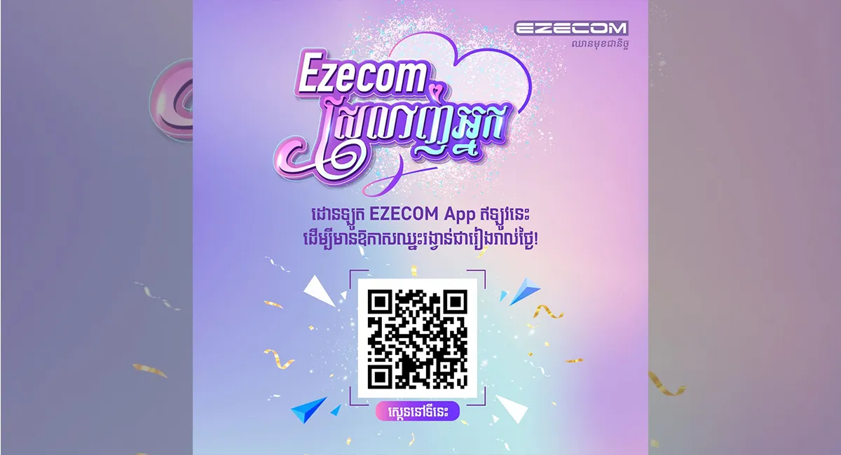 ដើម្បីថ្លែងអំណរគុណដល់អតិថិជនក្នុងឱកាសពិធីបុណ្យភ្ជុំបិណ្ឌនេះ ក្រុមហ៊ុន EZECOM មានកម្មវិធីពិសេសសម្រាប់អតិថិជនរបស់ខ្លួន ដោយគ្រាន់តែស្កេន QR Code និងដោនឡូតកម្មវិធីទូរស័ព្ទដៃ EZECOM ដើម្បីមានឱកាសឈ្នះរង្វាន់ជាច្រើនពេញមួយខែ! អ្នកឈ្នះរង្វាន់នឹងត្រូវបានជ្រើសរើសជារៀងរាល់ថ្ងៃ! សូមតាមដានហ្វេសបុកផេក របស់ក្រុមហ៊ុន EZECOM។ ប្រញាប់ឡើង រង្វាន់ជាច្រើនកំពុងរង់ចាំលោកអ្នក!