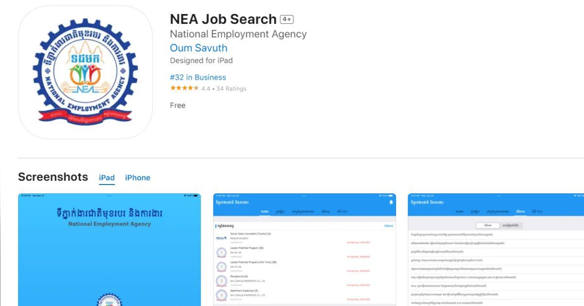 ពីមុនដើម្បីអាចរកការងារធ្វើបានបងប្អូនមួយចំនួនត្រូវសួរតាមមិត្តភក្តិ ឬតាមរកតាមបណ្តាញសង្គមដូចជាហ្វេសប៊ុកជាដើម ប៉ុន្តែពេលនេះលែងជាបញ្ហាលំបាកទៀតហើយក្រោយ ទីភ្នាក់ងារជាតិមុខរបរនិងការងារនៃក្រសួងការងារបណ្តុះបណ្តាលវិជ្ជាជីវៈ បានបង្កើតកម្មវិធីមួយសម្រាប់ផ្តល់ឱកាសឱ្យបងប្អូន សិស្សនិស្សិតអាចស្វែងរកការងារធ្វើបានដោយងាយស្រួលដោយមិនចាំបាច់ដើររកដូចមុននោះទេ គ្រាន់តែដោនឡូតកម្មវីធីរបស់ក្រសួងដែលមានឈ្មោះថា “NEA JOB SEARCH” តាមរយៈ Paly Store ឬ App Store គឺជាការស្រេច។