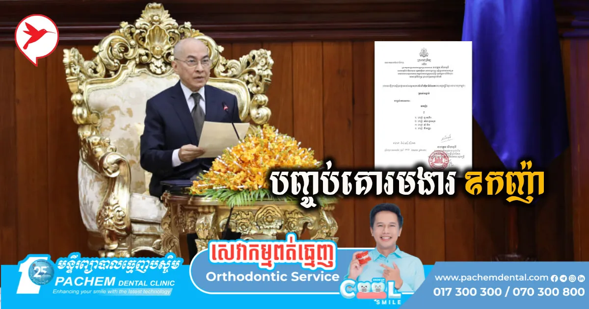 ព្រះករុណា ព្រះបាទសម្តេចព្រះបរមនាថ នរោត្តម សីហមុនី ព្រះមហាក្សត្រនៃព្រះរាជាណាចក្រកម្ពុជា បានចេញព្រះរាជក្រឹត្យត្រាស់បង្គាប់បញ្ចប់គោរមងារ «ឧកញ៉ា» ពីឧកញ៉ាចំនួន ៤ រូប។ ខណៈការបញ្ចប់គោរមងារឧកញ៉ានេះ ធ្វើឡើងតាមសេចក្តីក្រាបបង្គំទូលថ្វាយរបស់សម្តេចធិបតី ហ៊ុន ម៉ាណែត នាយករដ្ឋមន្ត្រីនៃព្រះរាជាណាចក្រកម្ពុជា។