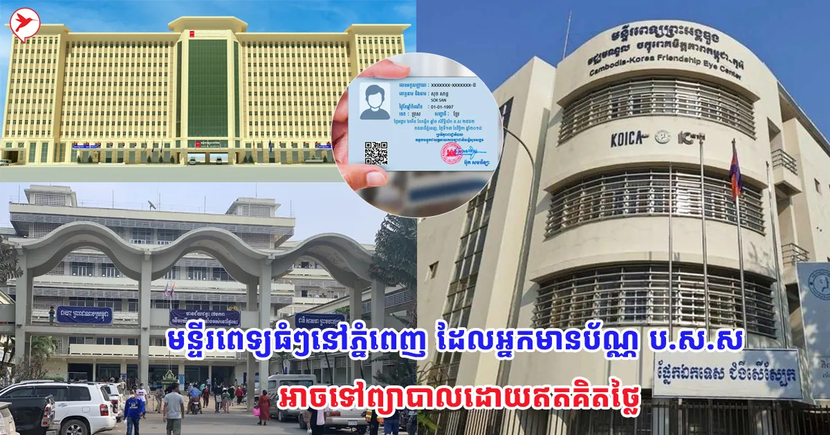 សម្រាប់ បងប្អូនដែលមានប័ណ្ណ ប.ស.ស ហើយចង់ប្រើប្រាស់សេវាព្យាបាលជំងឺនៅតាមមន្ទីរពេទ្យនៅរាជធានីភ្នំពេញ តែមិនទាន់ដឹងថាមានមន្ទីរពេទ្យណាខ្លះដែលមានដៃគូសហការជាមួយ ប.ស.ស ឈប់បារម្ភទៀតទៅ។ ខាងក្រោមនេះជាមន្ទីរពេទ្យធំៗនៅរាជធានីភ្នំពេញដែលមានដែលបានចុះកិច្ចព្រមព្រៀងជាមួយបេឡាជាតិសន្តិសុខសង្គម ផ្នែកថែទាំសុខភាព៖