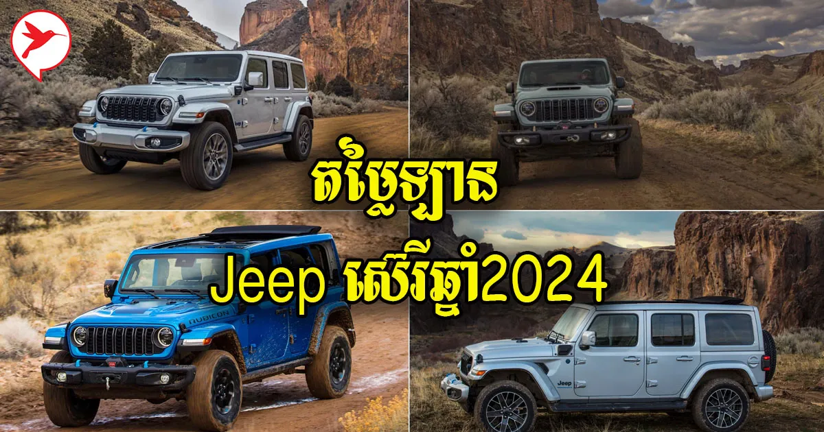 ពេញចិត្តស្តូកសម្រាប់ប្រិយមិត្តដែលនិយមចូលចិត្តឡើងភ្នំ ចុះទឹក ចូលព្រៃ បើកបរនៅលើផ្លូវដែលមានស្ថានភាពពិបាកៗ ឬបងប្អូនដែលតែងតែគាំទ្ររថយន្តធន់ខ្ពស់ ទូលាយៗ ងាយស្រួសក្នុងការធ្វើដំណើរ ពេលនេះ Jeep ស៊េរីឆ្នាំ២០២៤ដាក់លក់នៅខ្មែរហើយ ជាមួយរូបរាងស្អាតកប់តែម្តង ខណៈតម្លៃជាង១០ម៉ឺនដុល្លារ។