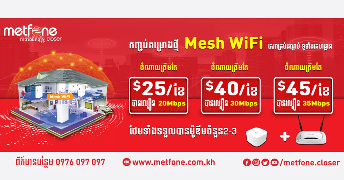 ដោយឡែកសម្រាប់កញ្ចប់សេវាកម្ម Mesh WiFi របស់ មិត្តហ្វូនវ៉ាយហ្វាយមានដូចជា៖