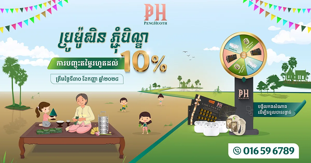 ដើម្បីចូលរួមអបអរសាទរក្នុងឱកាសពិធីបុណ្យភ្ជុំបិណ្ឌខាងមុខនេះ បុរី ប៉េង ហួត បាននាំមកនូវការផ្តល់ជូនដ៏ចំណេញ និងកាន់តែច្រើនជាងមុនដល់អតិថិជនដែលកំពុងរង់ចាំប្រូម៉ូសិនក្នុងពេលទិញផ្ទះផងដែរ។ សម្រាប់អតិថិជនដែលមានបំណងចង់ទិញនៅគេហដ្ឋានថ្មីក្នុងគម្រោងណាមួយរបស់បុរី ប៉េង ហួត ឥលូវនេះគឺដឹងតែចំណេញបន្ថែមជាច្រើនតែម្តងសម្រាប់តែអំឡុងពេលខែកញ្ញានេះតែប៉ុណ្ណោះ។