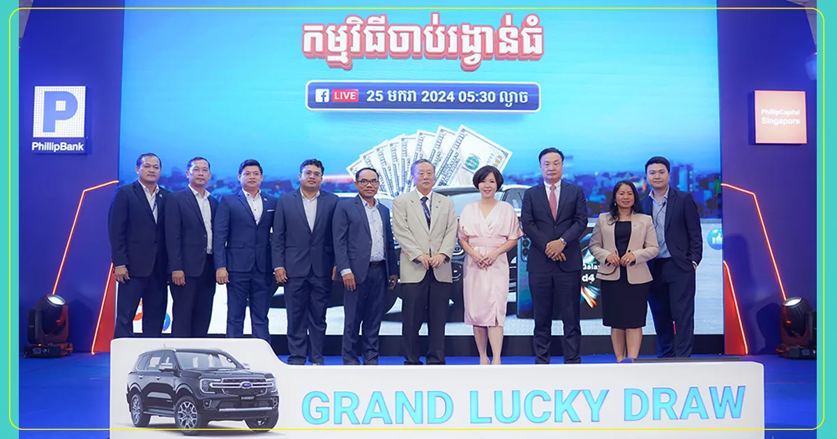 ភ្នំពេញ ថ្ងៃទី25 ខែមករា ឆ្នាំ2024 – ធនាគារ ហ្វីលីព ដែលជាធនាគារពាណិជ្ជដែលមានភាគទុនិកជនជាតិសិង្ហបុរីតែមួយគត់នៅប្រទេសកម្ពុជា មានសេចក្តីរំភើបរីករាយជាខ្លាំងក្នុងការប្រកាសពីការបិទបញ្ចប់ដោយជោគជ័យនៃកម្មវិធីចាប់រង្វាន់ធំ នៃប្រូម៉ូសិន “ត្រឡប់មកវិញ កាន់តែអស្ចារ្យ” ដែលនេះជាកម្មវិធីដែលទទួលបានការទន្ទឹងរង់ចាំជាយូរពីសំណាក់អតិថិជនក្នុងការស្វែងរកអតិថិជនមហាសំណាង ដើម្បីឈ្នះរង្វាន់រថយន្ត Ford Everest 2023។
