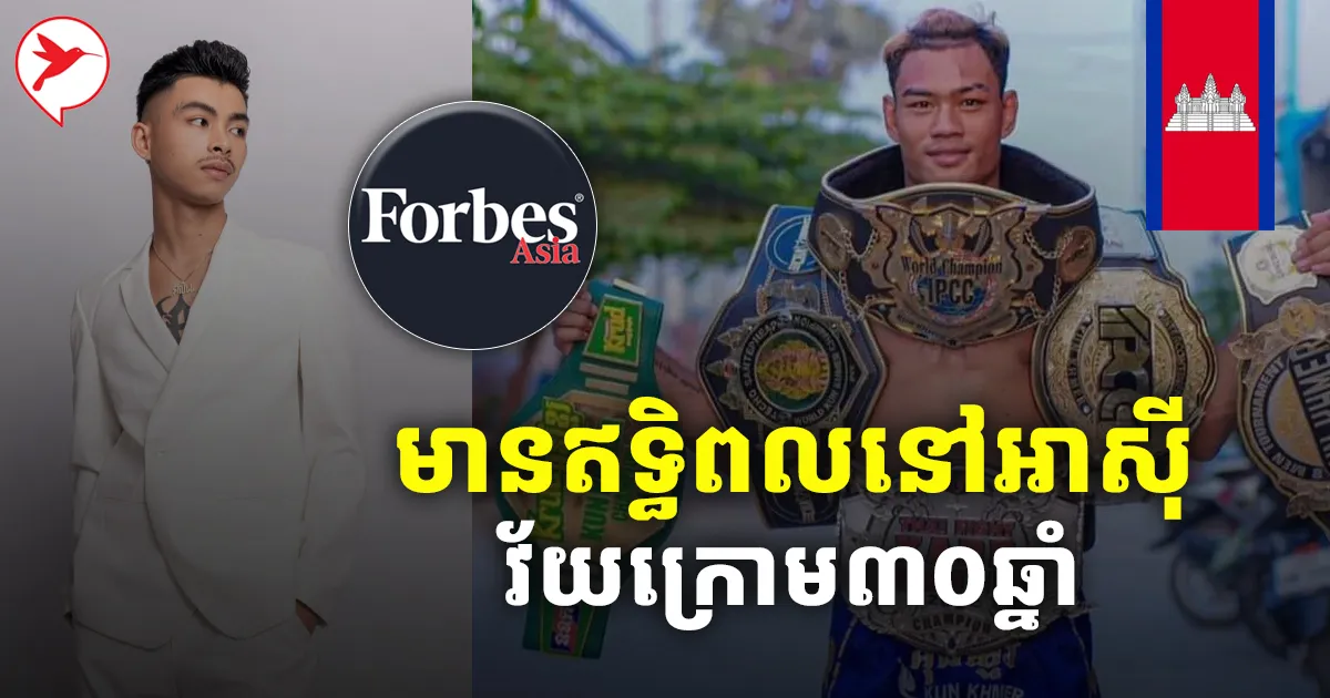 ក្នុងតារាងរបស់ទស្សនាវដ្តីដ៏ល្បីរបស់អាមេរិក Forbes ចាត់ចំណាត់ថ្នាក់បុគ្គល មានឥទ្ធិពលបំផុតនៅទ្វីបអាស៊ី សម្រាប់ឆ្នាំ២០២៤ ដែលមានវ័យស្ថិតក្រោម៣០ឆ្នាំ គេសង្កេតឃើញថាបុគ្គលដែលតំណាងឱ្យប្រទេសកម្ពុជាគឺមានចំនួន២រូបគឺ តារាចម្រៀងរ៉េប លោក ម៉ាន់ វណ្ណដា និងកីឡាករប្រដាល់គុនខ្មែរ លោក ធឿន ធារ៉ា។