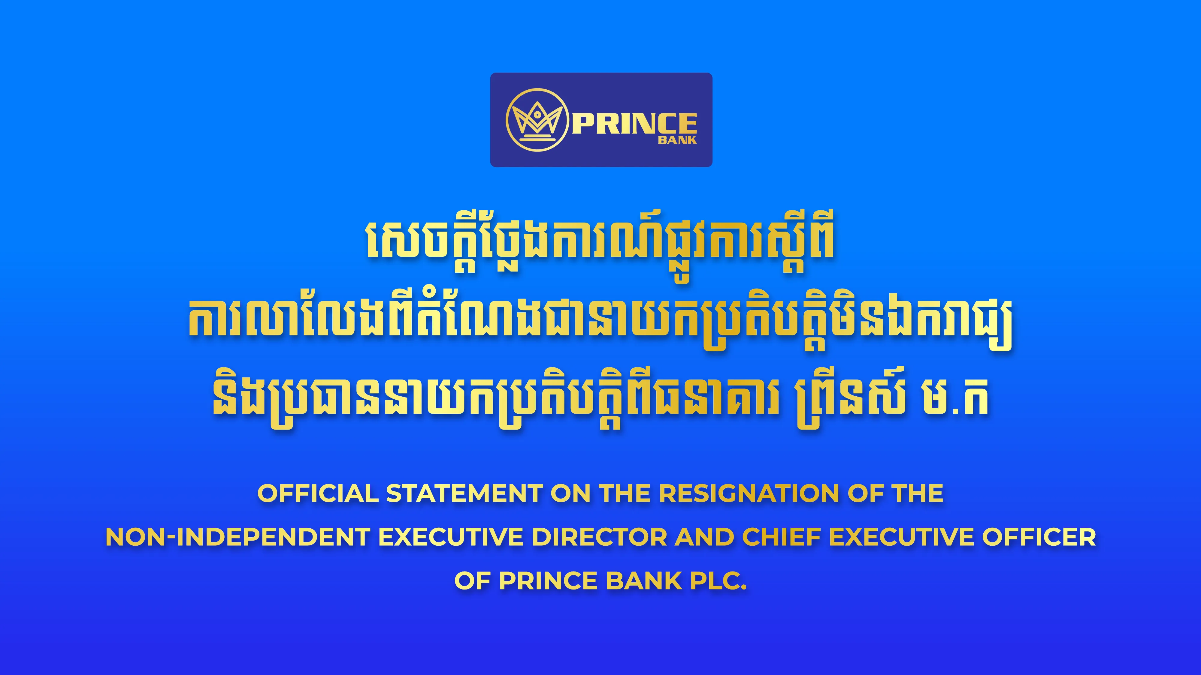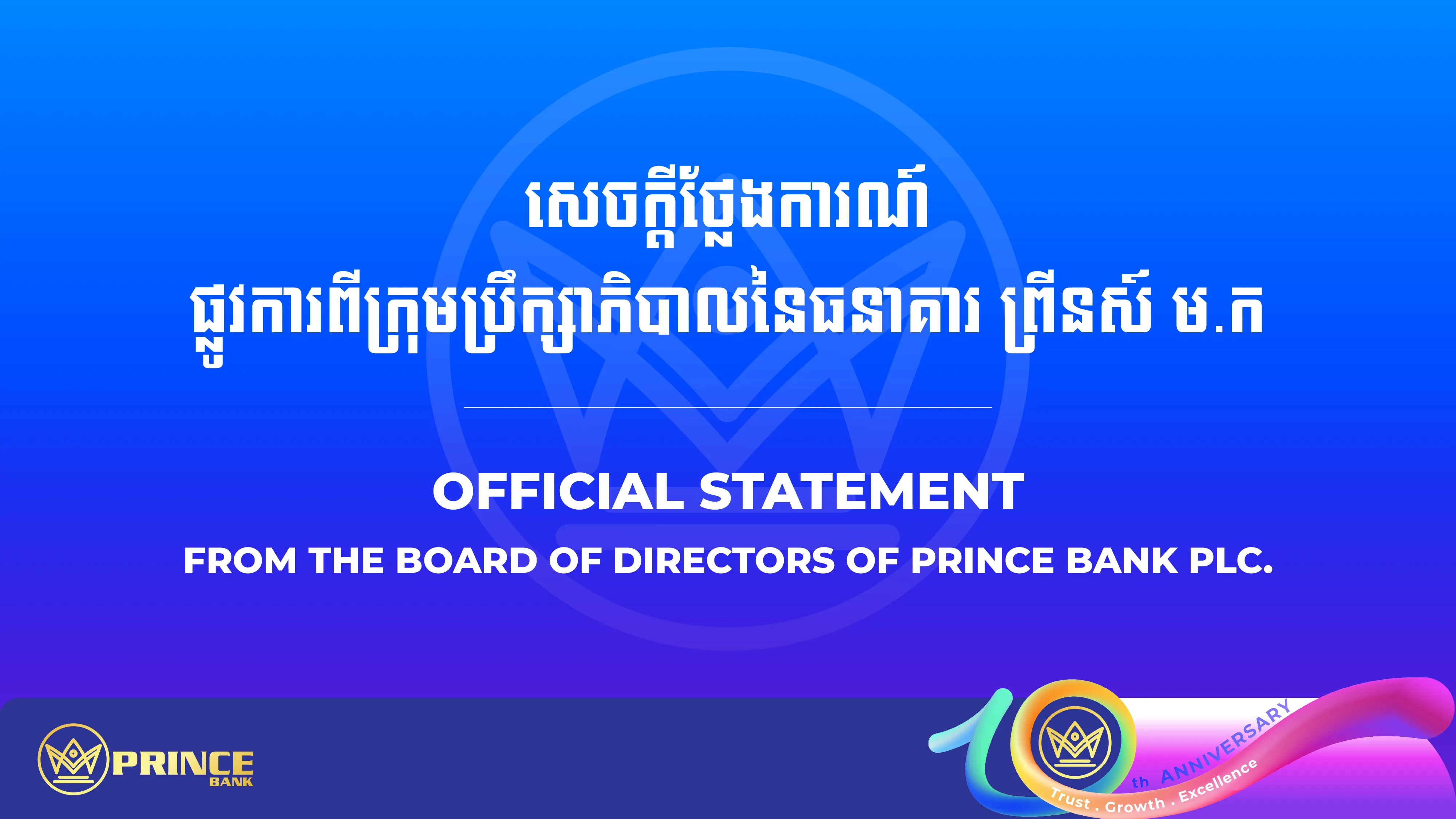 សេចក្តីថ្លែងការណ៍ផ្លូវការពីក្រុមប្រឹក្សាភិបាលនៃធនាគារ ព្រីនស៍ ម.ក