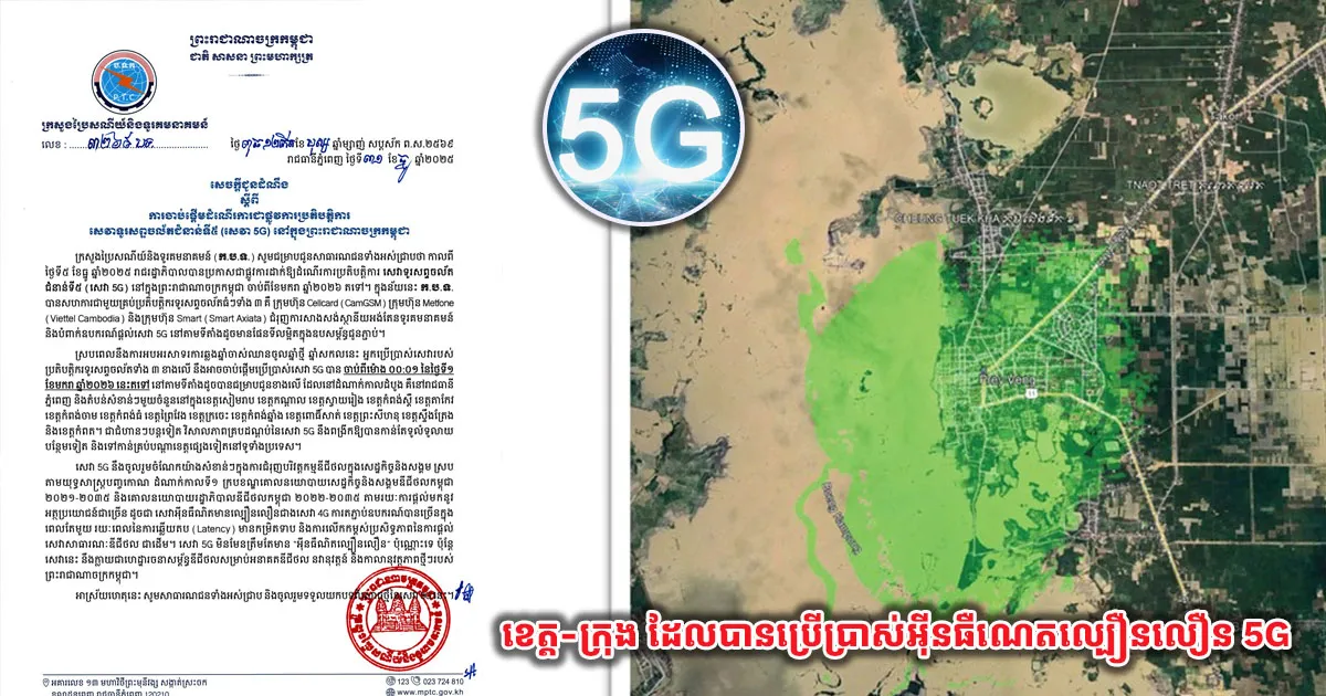 ដំណឹងល្អ! នេះជាខេត្ត-ក្រុង ដែលបានប្រើប្រាស់អ៊ីនធឺណេតល្បឿនលឿន 5G ដំបូងគេបង្អស់នៅកម្ពុជា