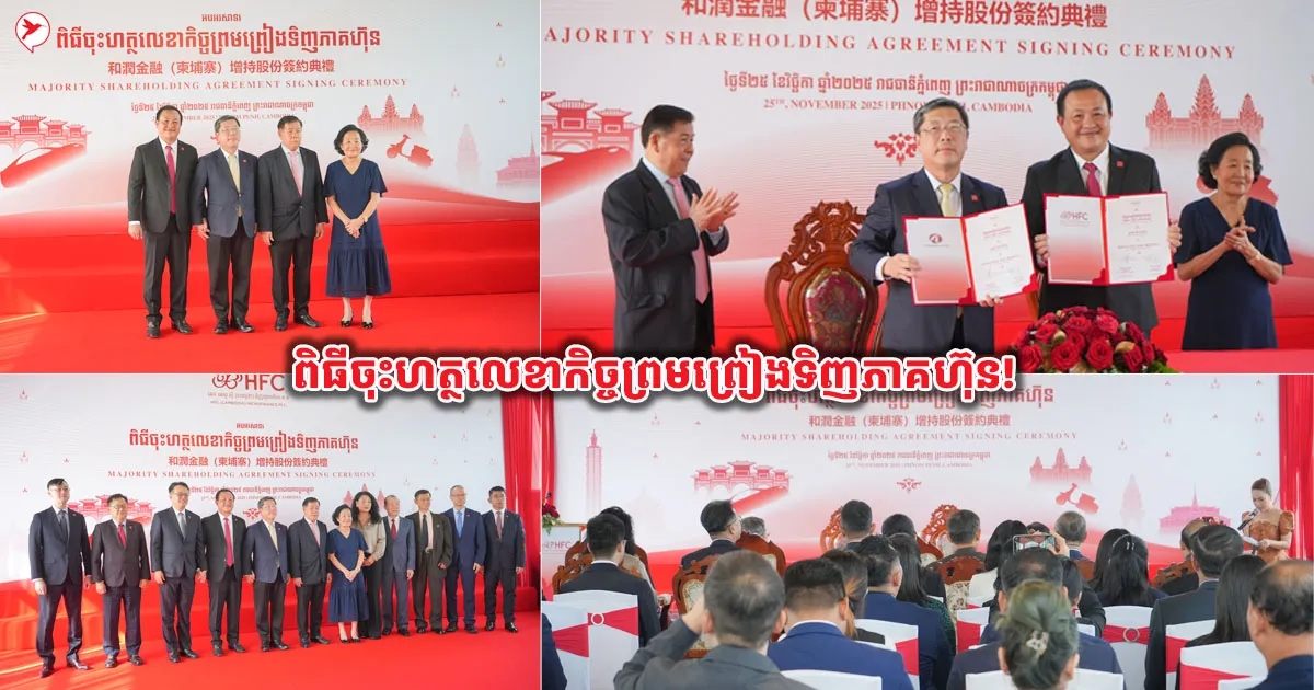 ពិធីចុះហត្ថលេខាកិច្ចព្រមព្រៀងទិញភាគហ៊ុនរវាង HOTAI FINANCE CO., LTD.និងគ្រឹះស្ថាន អេច អេហ្វ ស៊ី (ខេមបូឌា) មីក្រូហ្វាយនែន ម.ក