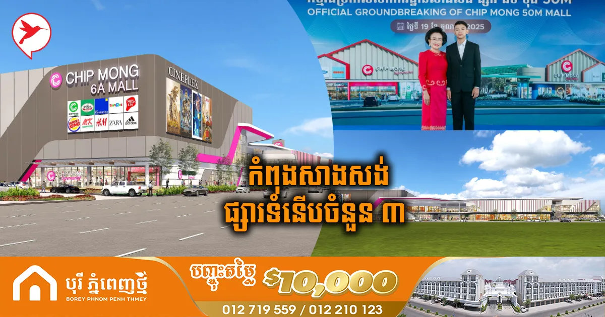 ទីតាំងថ្មីៗ! ក្រុមហ៊ុន ជីប ម៉ុង កំពុងបើកសាងសង់ផ្សារទំនើបធំៗ ៣ នៅទីតាំងទាំងនេះ