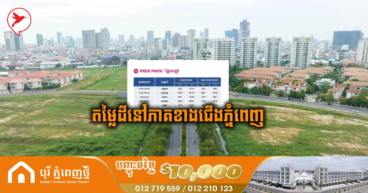 ចង់ទិញដីត្រូវដឹង! នេះជាតម្លៃដីថ្មីនៅខណ្ឌសែនសុខ ខណ្ឌទួលគោក ខណ្ឌឫស្សីកែវ និងខណ្ឌព្រែកព្នៅ