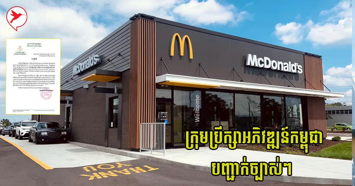 ក្រុមប្រឹក្សាអភិវឌ្ឍន៍កម្ពុជា បញ្ជាក់ច្បាស់ៗ ទាក់ទងព័ត៌មានអំពីក្រុមហ៊ុន McDonald's គ្រោងបោះជំហានចូលមកបើកហាងនៅខ្មែរ