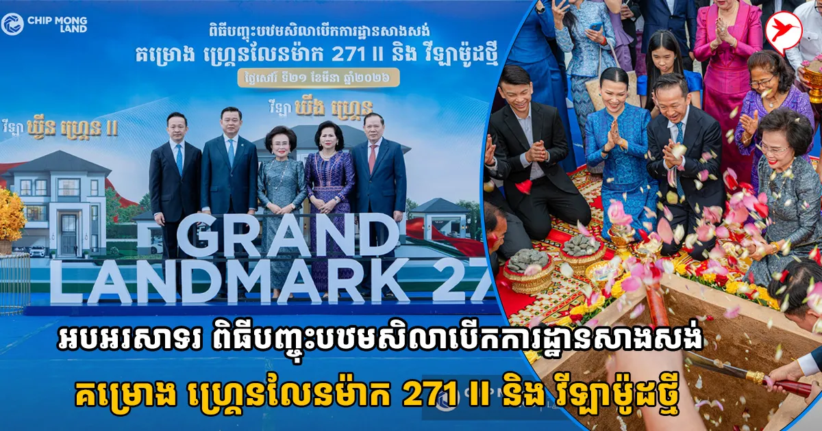 ខ្លាំងមែនទែន ទើបតែប្រកាសបុកគ្រឹះម៉ូដផ្ទះថ្មី ហូម អហ្វហ្វីស៍ II ប៉ុន្មានថ្ងៃមុន ឥឡូវក្រុមហ៊ុន ជីប ម៉ុង លែន ប្រកាសពិធីបញ្ចុះបឋមសិលាបើកការដ្ឋានសាងសង់ គម្រោង ហ្រ្គេនលែនម៉ាក 271 II និងវីឡាម៉ូដថ្មី 3 បន្ថែមទៀត!