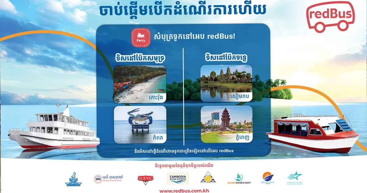 redBus Cambodia បើកដំណើរការសេវាកក់សំបុត្រទូក ដើម្បីសម្រួលការធ្វើដំណើរទូទាំងប្រទេស