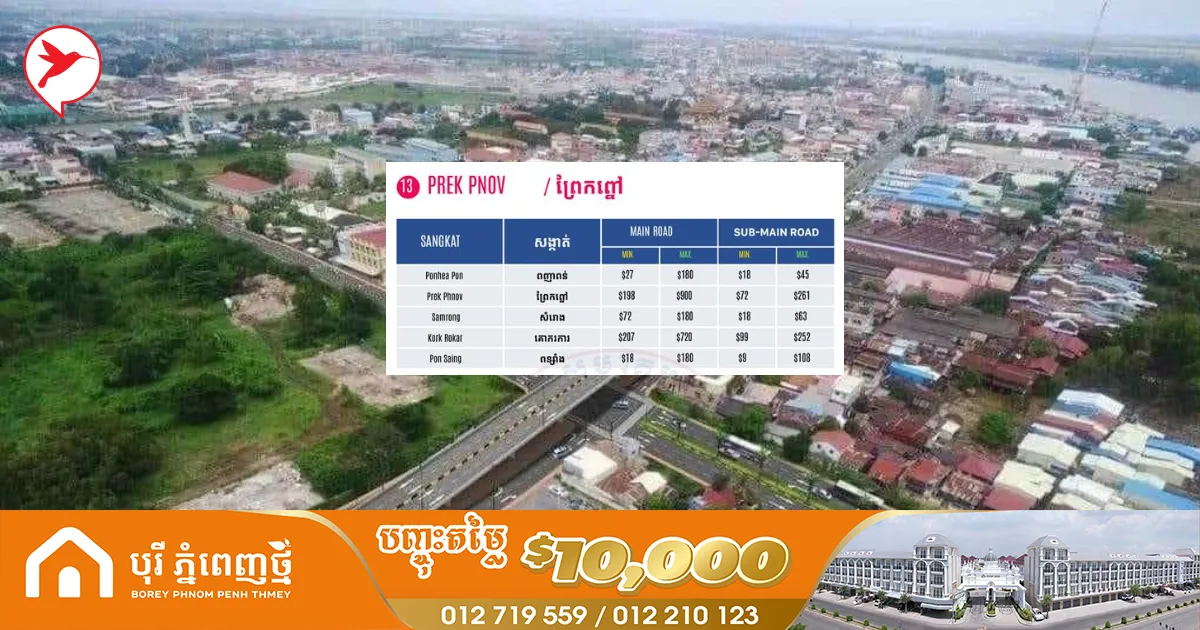 នៅតែបន្ដចុះថ្លៃ! នេះជាតម្លៃដីធ្លី នៅភាគខាងជើងរាជធានីភ្នំពេញ