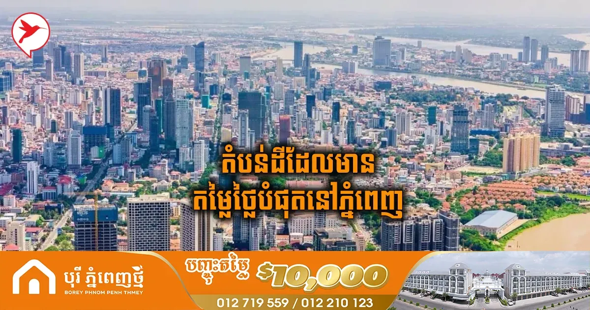 ១ម៉ែត្រការ៉េជាង ១ ម៉ឺនដុល្លារក៏មាន! នេះជាតំបន់ដីដែលមានតម្លៃថ្លៃបំផុតនៅភូមិសាស្ដ្ររាជធានីភ្នំពេញ