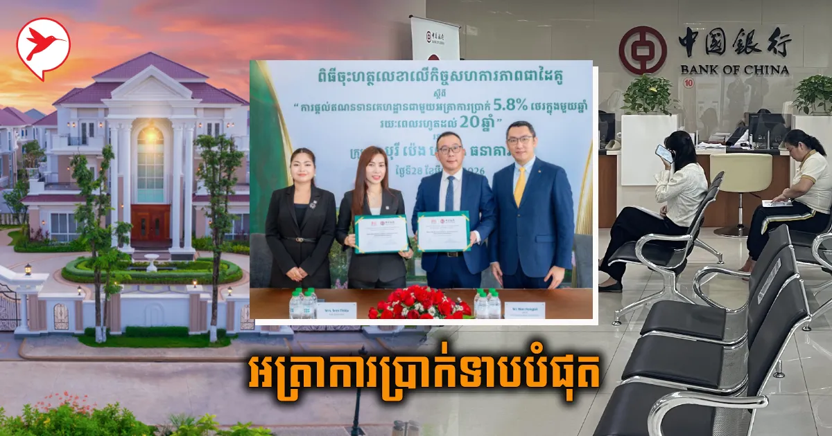 ពិសេសណាស់! ធនាគារចិនសហការជាមួយបុរី ប៉េង ហួត ផ្តល់កម្ចីទិញផ្ទះថ្មី ក្នុងអត្រាការប្រាក់ត្រឹម ៥.៨% ក្នុង១ឆ្នាំ