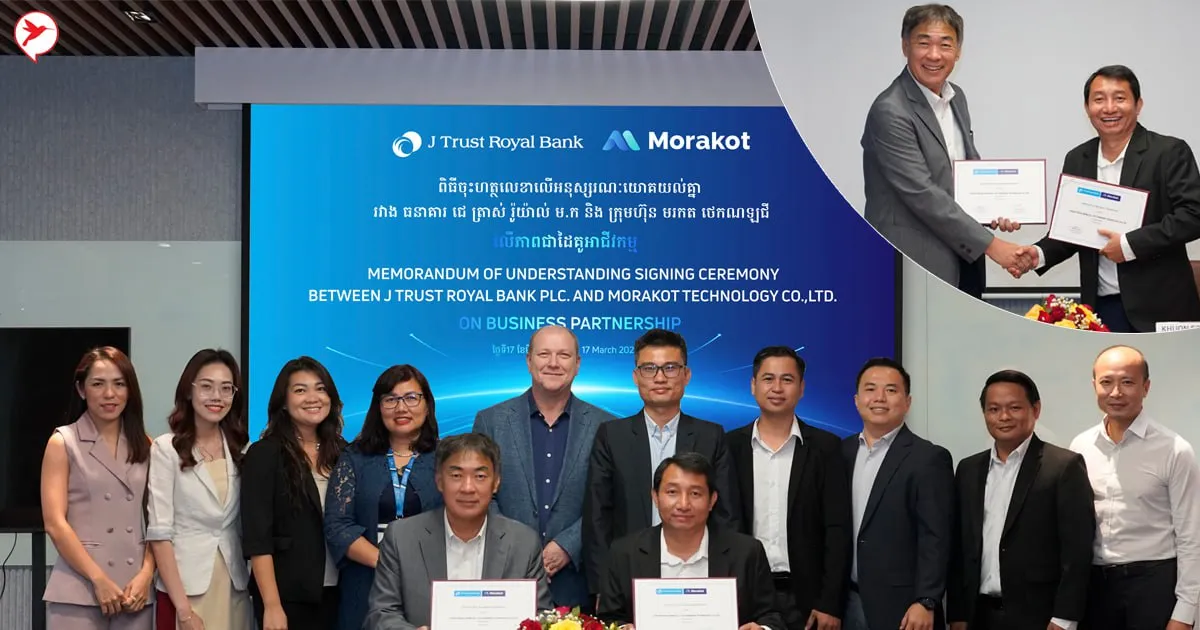 ភ្នំពេញ ថ្ងៃទី ១៧ ខែមីនា ឆ្នាំ ២០២៥៖ ធនាគារ ជេ ត្រាស់ រ៉ូយ៉ាល់ និង ក្រុមហ៊ុន Morakot Technology បានចុះហត្ថលេខាភាពជាដៃគូអាជីវកម្មតាមរយៈការចុះអនុស្សារណៈយោគយល់គ្នា នៅការិយាល័យកណ្តាលរបស់ធនាគារ ជេ ត្រាស់ រ៉ូយ៉ាល់ ក្នុងគោលបំណងសម្រួលដល់ដំណោះស្រាយទូទាត់ឌីជីថលសម្រាប់សហគ្រាសធុនតូច និងមធ្យម (SMEs) តាមរយៈការរួមបញ្ចូលកម្មវិធី Software Application នៃភាគីទាំងពីរ។