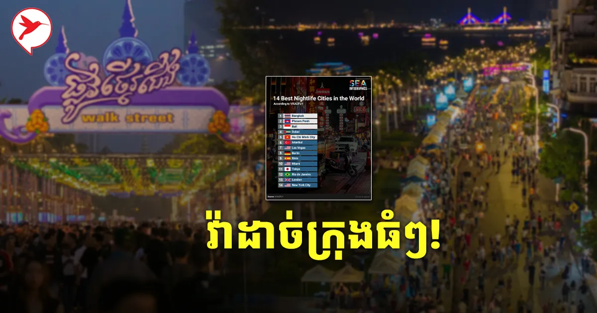ក្នុងនោះទីក្រុងភ្នំពេញ ប្រទេសកម្ពុជា ដែលមានផ្លូវថ្មើរជើង-Walk Street បានជាប់ចំណាត់ថ្នាក់លេខ២ ជាតំបន់កម្សាន្តល្អបំផុតនាំមុខដោយទីក្រុងបាងកក ប្រទេសថៃ ដែលបានជាប់ ចំណាត់ថ្នាក់លេខ១។