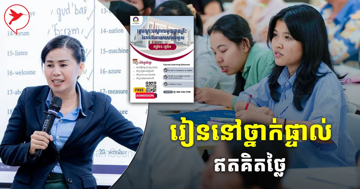សម្រាប់បងប្អូនដែលកំពុងស្វែងរកការសិក្សាភាសាអង់គ្លេសបន្ថែមនិងត្រូវការរៀននៅក្នុងថ្នាក់ផ្ទាល់ ពេលនេះជាឱកាសល្អមួយ។ ខណៈសហភាពសហព័ន្ធយុវជនកម្ពុជា (ស.ស.យ.ក) ប្រកាសបើកថ្នាក់បង្រៀនភាសាអង់គ្លេស កម្រិត១ វគ្គ៤ រយៈពេល៥សប្តាហ៍ ស្មើនឹង៣៦ម៉ោង ដល់សាធារណៈជនអាចចុះឈ្មោះចូលរៀនបាន ដោយឥតគិតថ្លៃឡើយ។