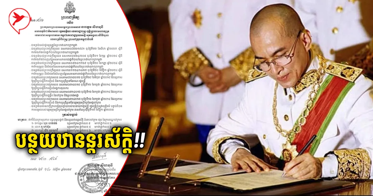 ព្រះមហាក្សត្រចេញព្រះរាជក្រឹត្យ ដាក់វិន័យ និងបន្ថយឋានន្តរស័ក្តិ លើចៅក្រម ៥រូប